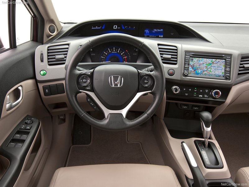2012 Honda Civic interior as impressive as the design of the body, while the instrument layout featuring a bold and forward. Part of the new Civic is built on the advanced design of the current generation Civic with adopting "smart interface" approach. With this approach, the interior is divided into different areas to show the key instruments on the steering wheel, secondary information is located lower in the visible through the steering wheel, and a third area to the right of the driver. Overall, the controls are clear and easy to operate, with simple, clean layout and operation is very intuitive.